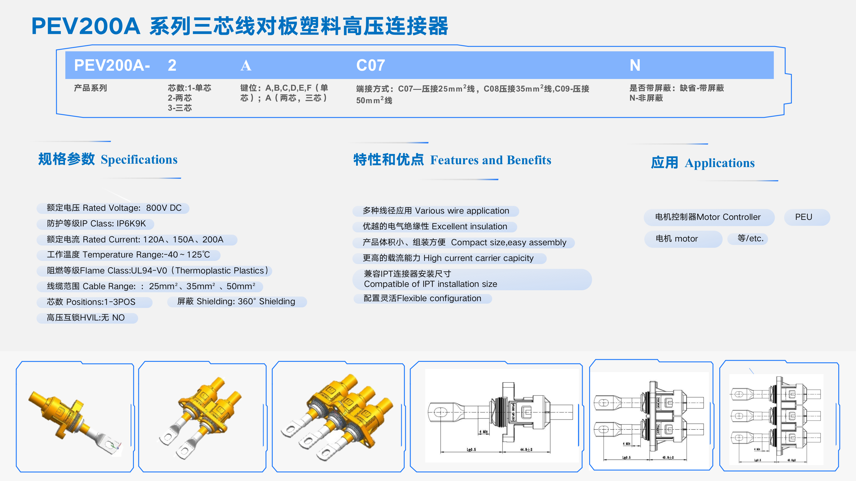 PEV200A 系列三芯線對闆塑料高壓連接器