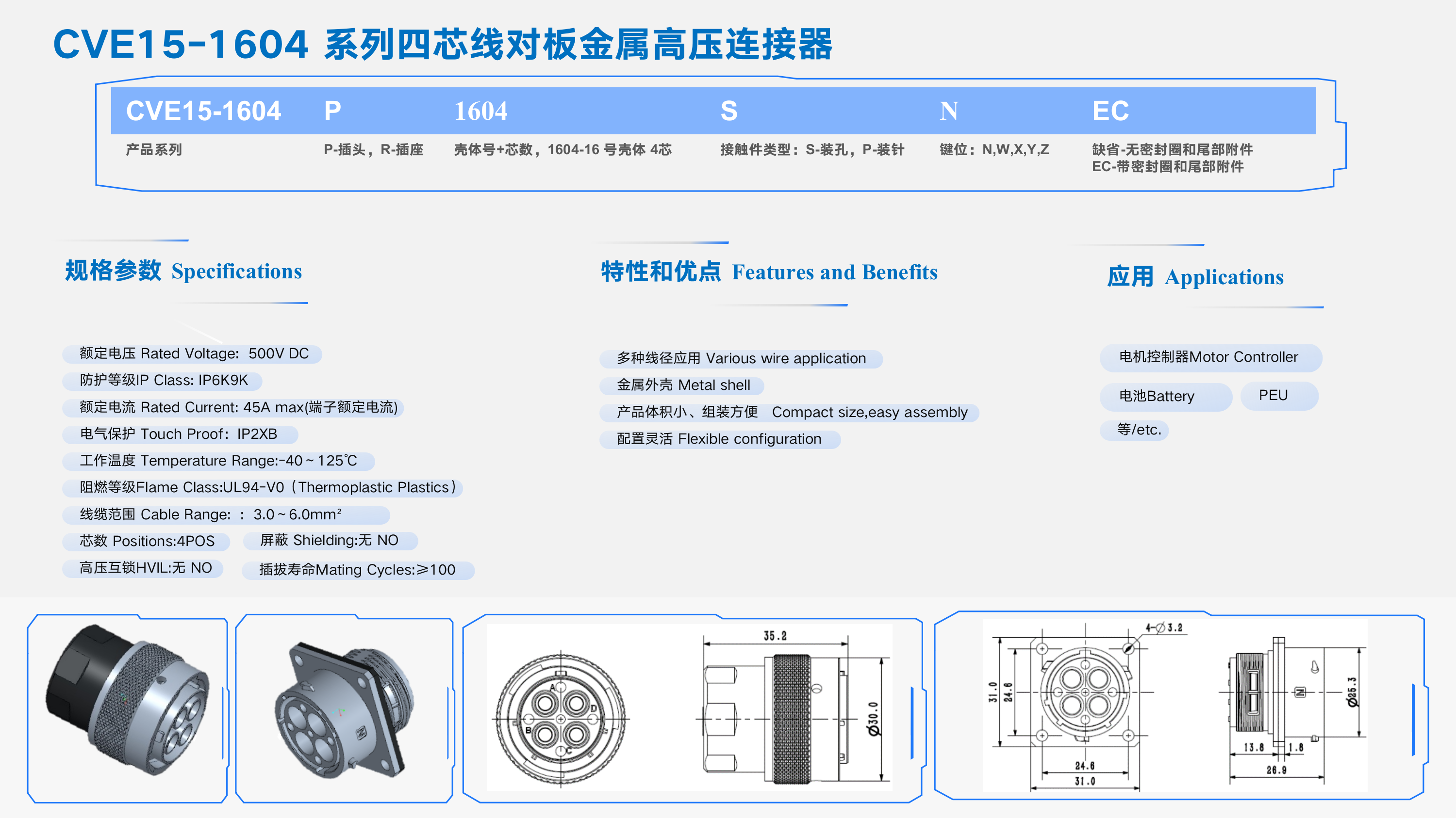 CVE15-1604 系列四芯線對闆金屬高壓連接器