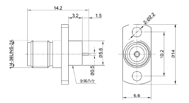 | 特性阻抗 | 50Ω | 内導體 | 插針 | 黃銅 | 鍍金 | |