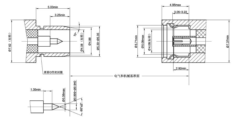 | 特性阻抗 | 50Ω | 内導體 | 插針 | 黃銅 | 鍍金 | |