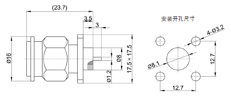 | 特性阻抗 | 50Ω | 内導體 | 插針 | 黃銅 | 鍍金 | |