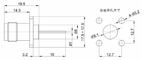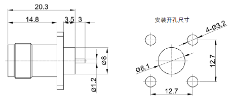 | 電壓駐波比 | ≤1.3 | 絕緣介質 | PTFE | |||