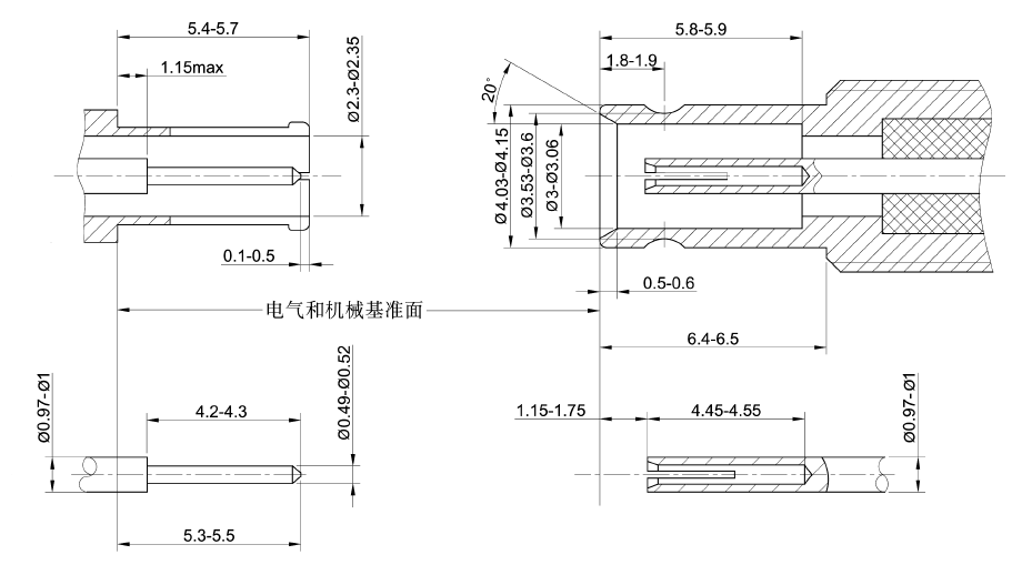 | 特性阻抗 | 50Ω | 内導體 | 插針 | 錫青銅 | 鍍金 | |