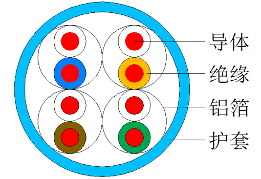 芯線對絞,顔色分别是:白/藍,白/橙,白/綠,白/粽