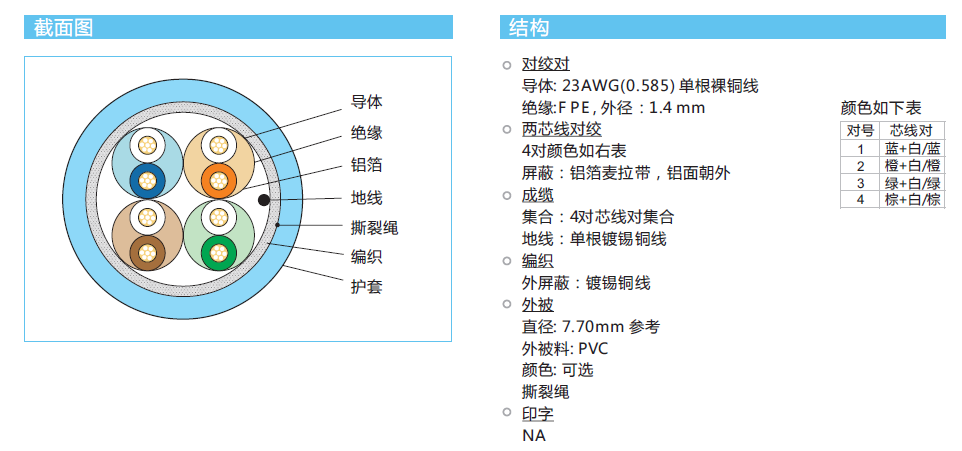 參考标準:UL444,EIA/TIA 568B.2-1,ISO/IEC