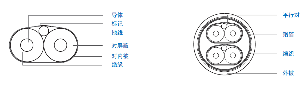 | 地線:30 AWG 單根鍍錫銅線, 外徑0.26 mm | 外屏蔽:38 AWG 鍍錫導體,重疊率 80% |